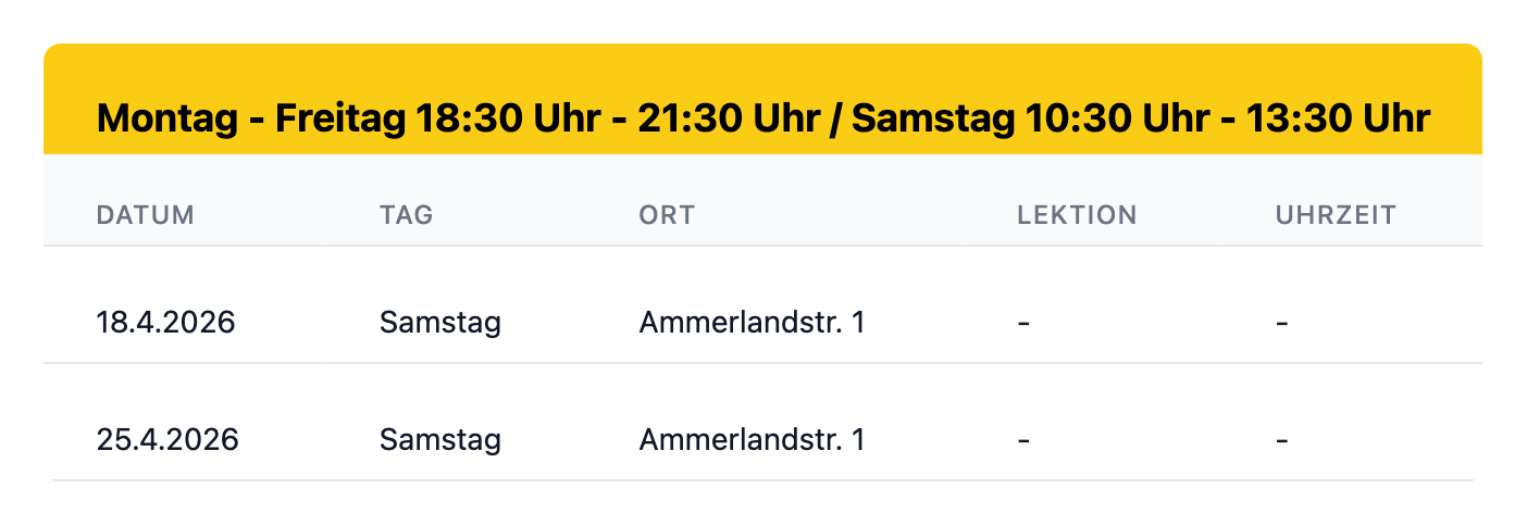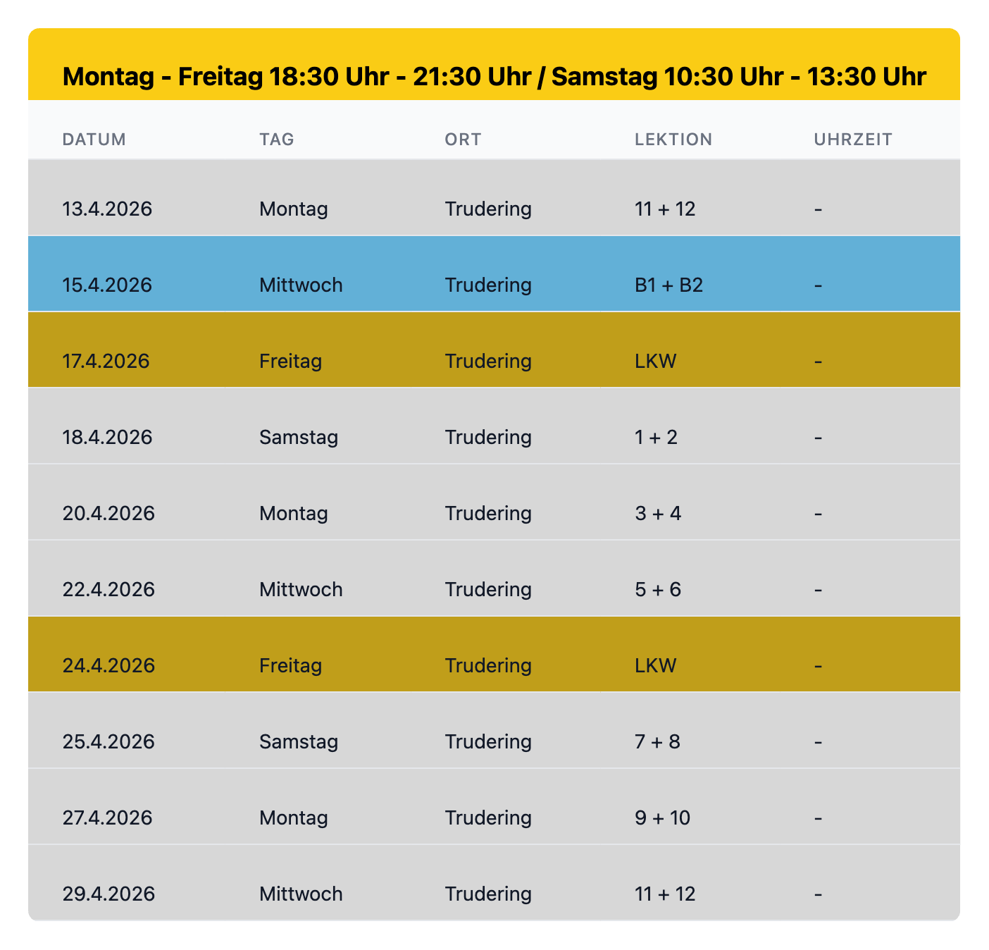 Wir bieten an unseren Standorten Trudering, Berg am Laim und Fürstenried an sechs Tagen pro Woche Theorieunterricht an.